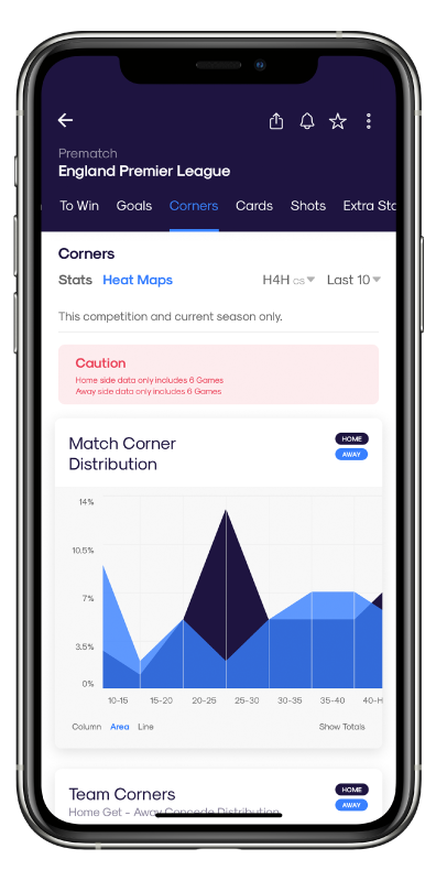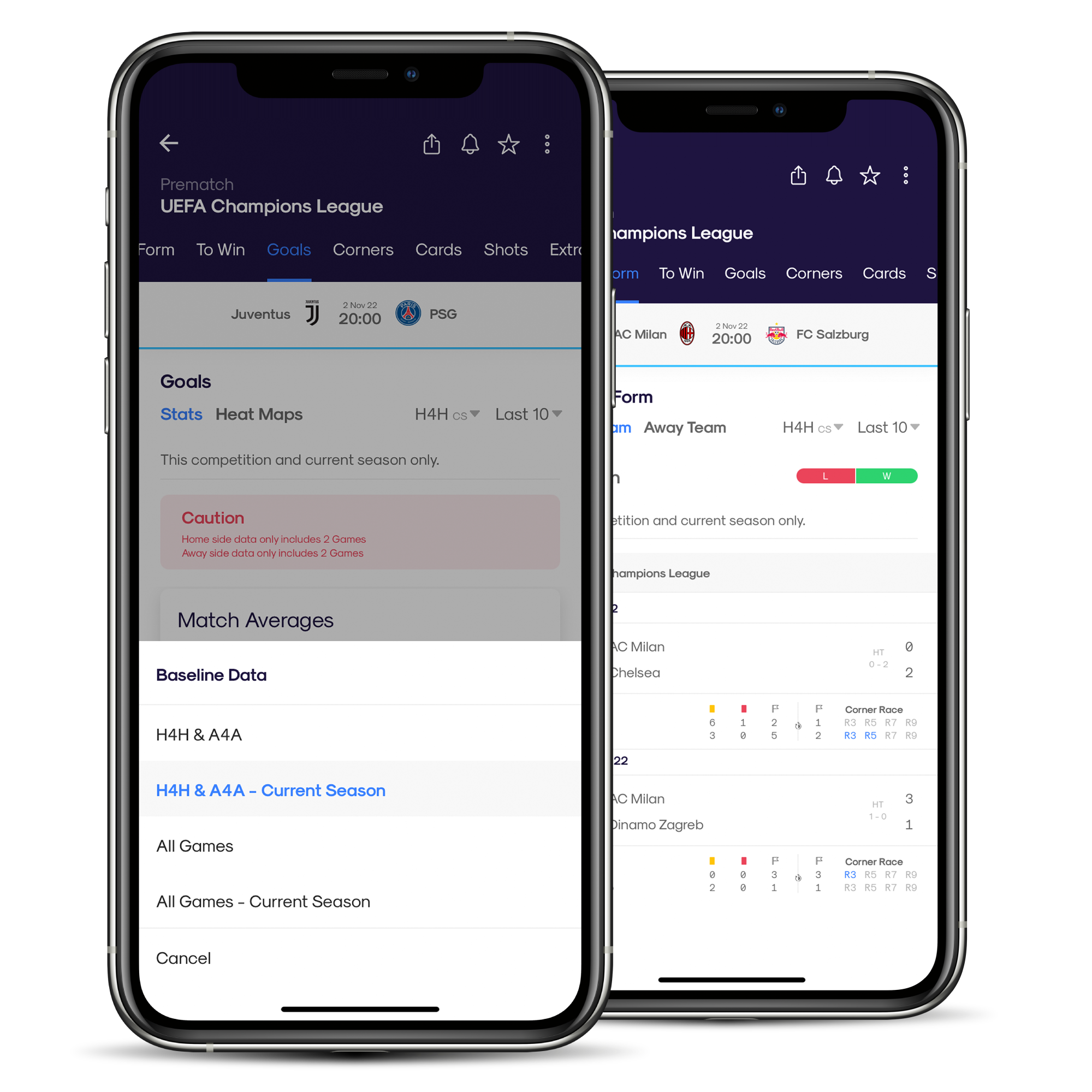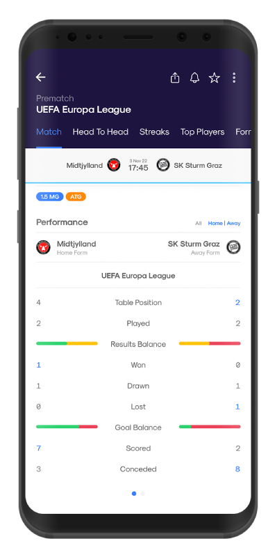 Prematch competition performance is more interactive and has been updated so yop can switch between all and home/away games.